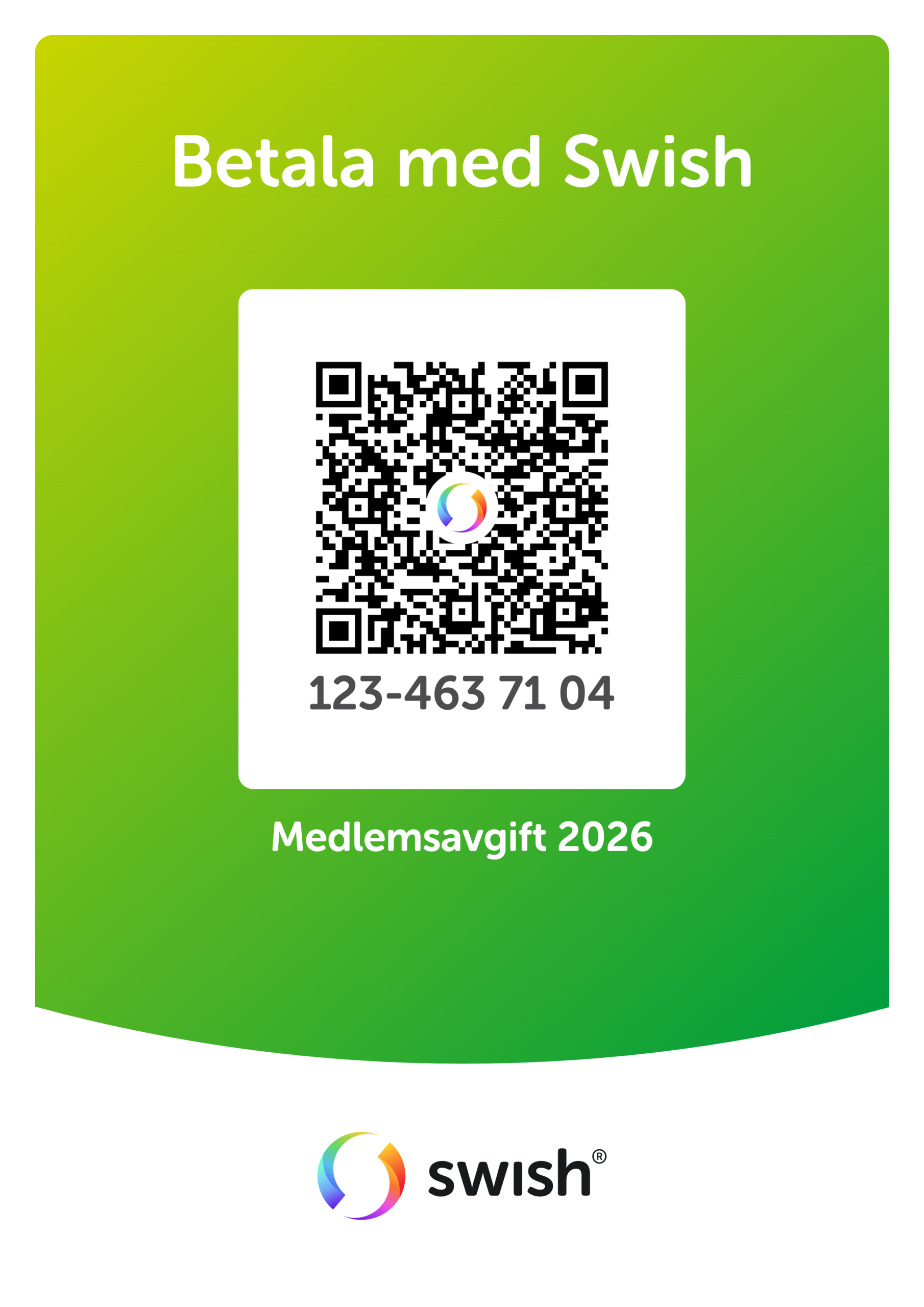 Det går bra att betala in medlemsavgiften för 2026 genom att använda QR-koden till Swish eller föreningens bankgiro. Medlemsavgiften 2026 är, 150kr.